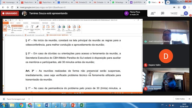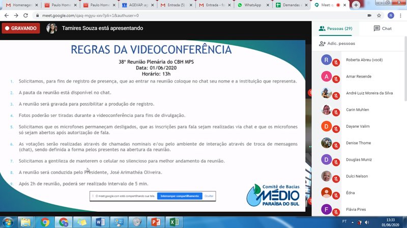 01-06-2020 - 38ª Reunião Plenária Ordinária do Comitê Médio Paraíba do Sul Videoconferência