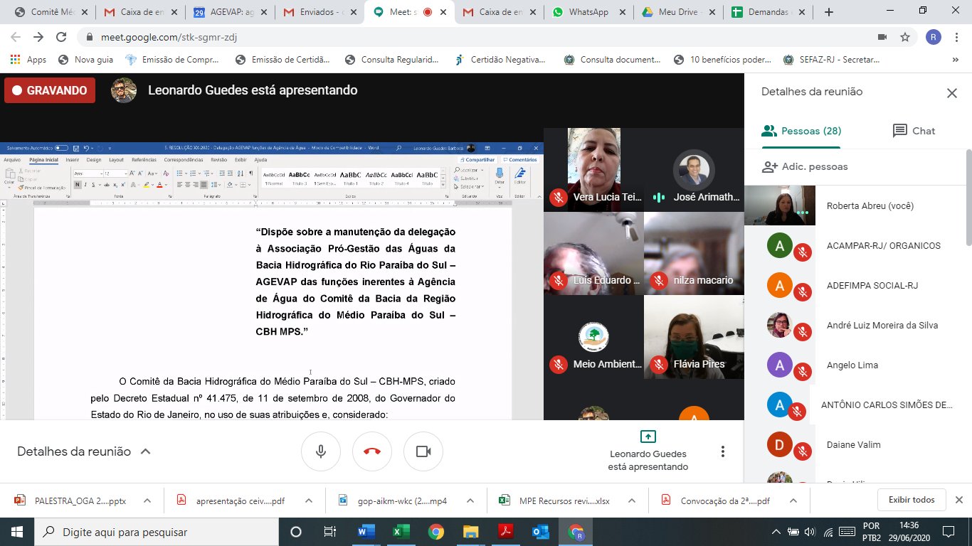 29-06-2020 - 16ª Reunião Plenária Extraordinária do Comitê Médio Paraíba do Sul Videoconferência